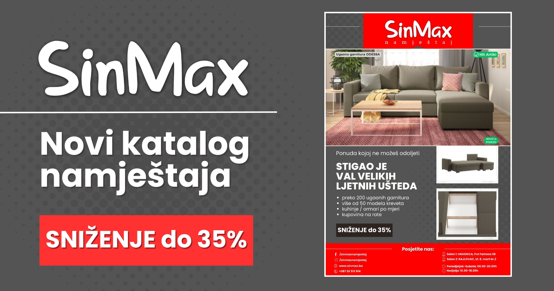 SinMax salon namještaja s ponosom vam predstavlja novi katalog i poziva vas da posjetite njihove salone za vikend. Ovog puta, potrudili su se da vam ponude najkvalitetnije komade po nevjerovatnim cijenama, uz specijalne popuste koji će vas oduševiti.